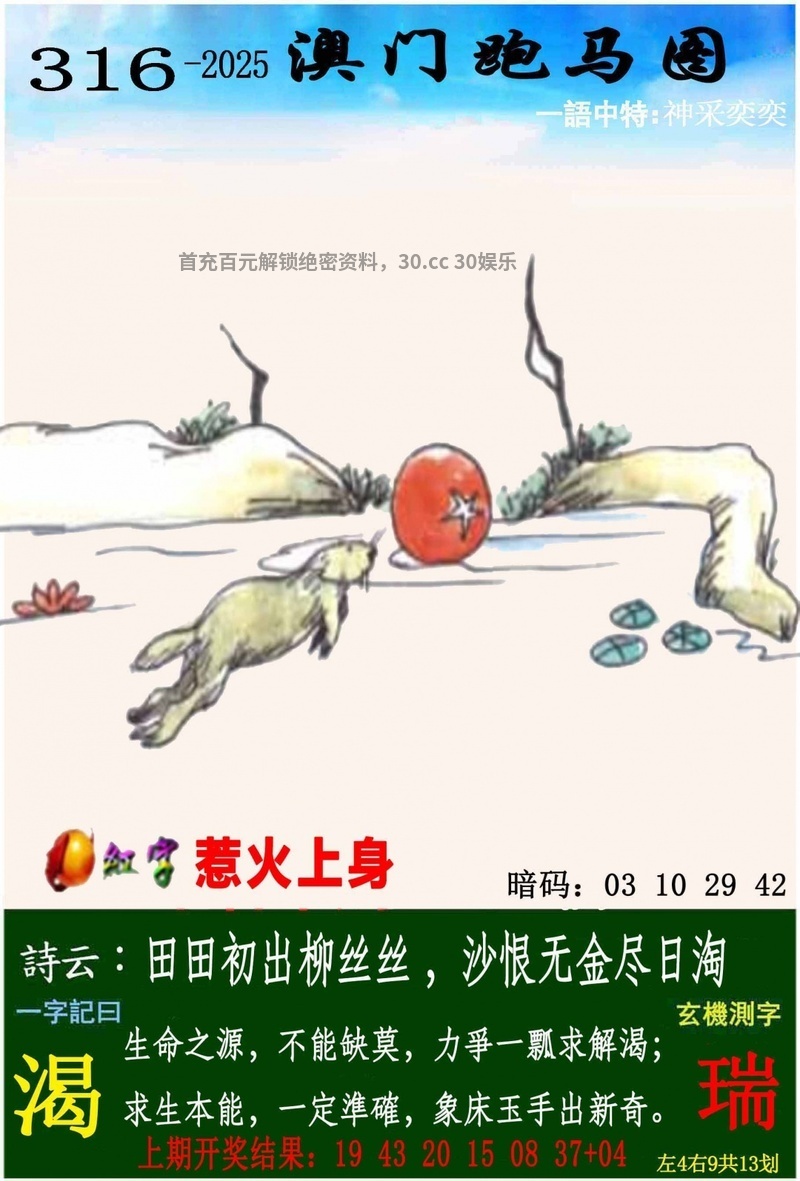 316期一字記曰开:马24中【渴】